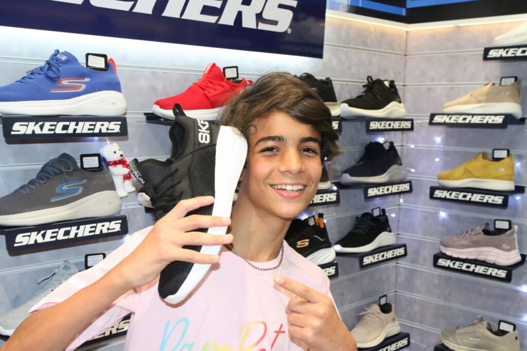 O ator demostrou muito animado com a nova loja Winged e aproveitou para conhecer os novos modelos da marca de Tênis Shechers, uma das marcas de calçados mais vendidos nos Estados Unidos, que vem conquistando o mercado brasileiro. Allexandre Colmam além de conhecer a história da loja Winged, participar de um teste de esteira e experimentar alguns calçados , o jovem ator, foi presenteado com um belo modelo de tênis da marca Shechers. Calmam adorou o presente e não cansava de falar o quanto o tênis era confortável e bonito.