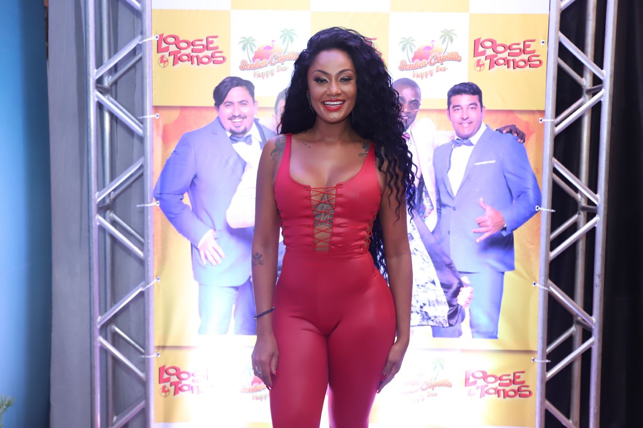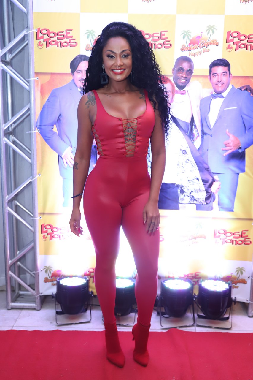 Camila que estava vestida com um look todo vermelho ressaltando suas curvas. será musa da Paraíso do Tuiuti no próximo carnaval.