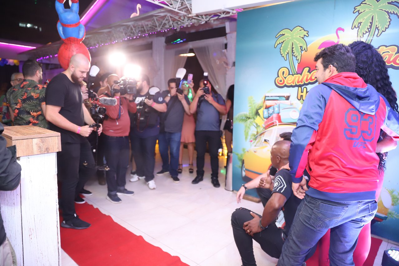 Pedro Carvalho, que interpreta o padeiro Abel de A Dona do Pedaço, faz uma participação no clipe. O ator português foi um dos primeiros a chegar e estava ansioso para conferir o trabalho no telão.