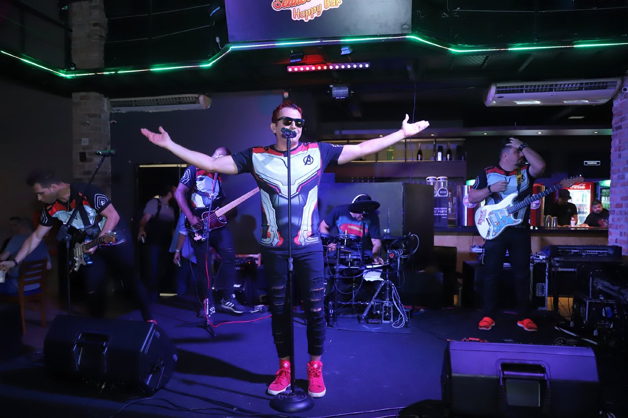 Rodrigo Pica-Pau (vocalista), E.J. (guitarra, solo e violão), Jonas Café (baixo), Serginho (guitarra, base e violão) e Dolabella (bateria) chegaram a bordo de um fusca azul igual ao que foi usado nas gravações do clipe de “Bom Bom”, já para esquentar os convidados, que vibraram com os músicos.