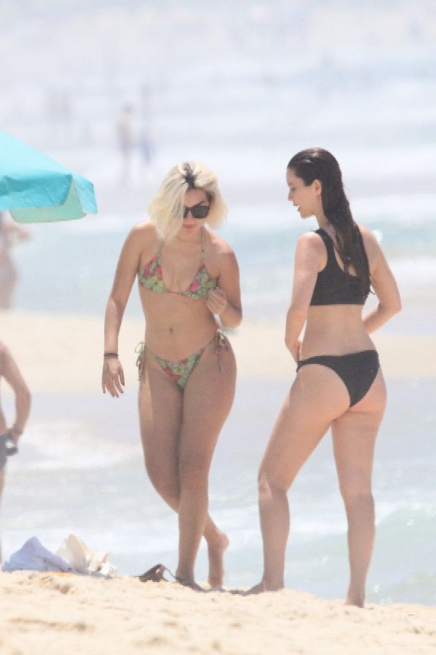 As amigas Nathalia Dill e Marina Moschen estiveram reforçando a marquinha em uma praia na zona sul do Rio na tarde desta sexta (13).