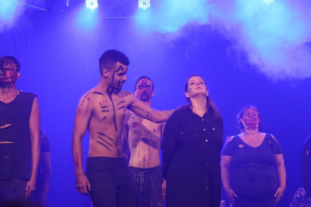 Neste espetáculo, em que os tempos em que o teatro era um veículo de protesto genuíno, cada cena foi uma obra-prima de intensidade e significado, com Vanessa Fontana brilhando em cada momento, ora como vilã, ora como vítima. A presença vibrante de Rafaelly Angel, uma magnífica atriz trans que também exaltou o sincretismo brasileiro, também iluminou o palco, elevando a energia e a emoção da narrativa.